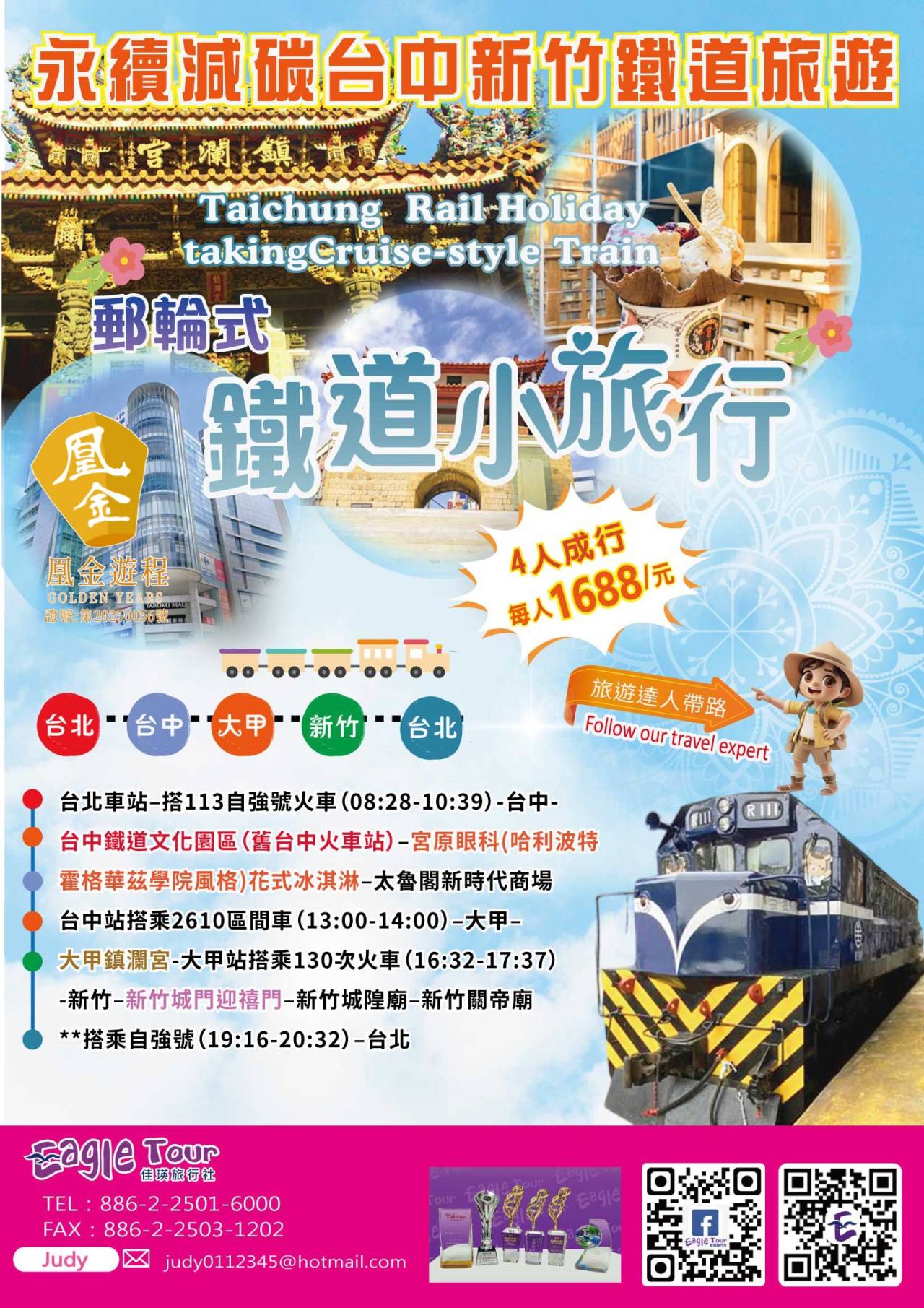 以火車串連城市與信仰、文化與美食,實踐低碳慢旅。沿途探訪台中鐵道文化、宮原眼科、大甲鎮瀾宮與新竹古城。